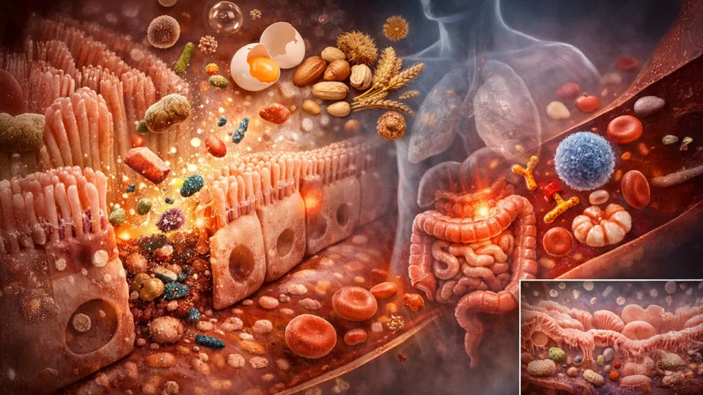 W tym etapie nie chodzi już o to, co dzieje się w jelitach jako środowisku, tylko o to, jak zmienia się relacja organizmu z tym, co do niego trafia, bo moment rozszczelnienia nie jest tylko zmianą strukturalną, lecz zmianą sposobu interpretacji bodźców, a to oznacza, że to samo jedzenie, to samo powietrze, te same warunki zaczynają wywoływać zupełnie inne reakcje niż wcześniej.